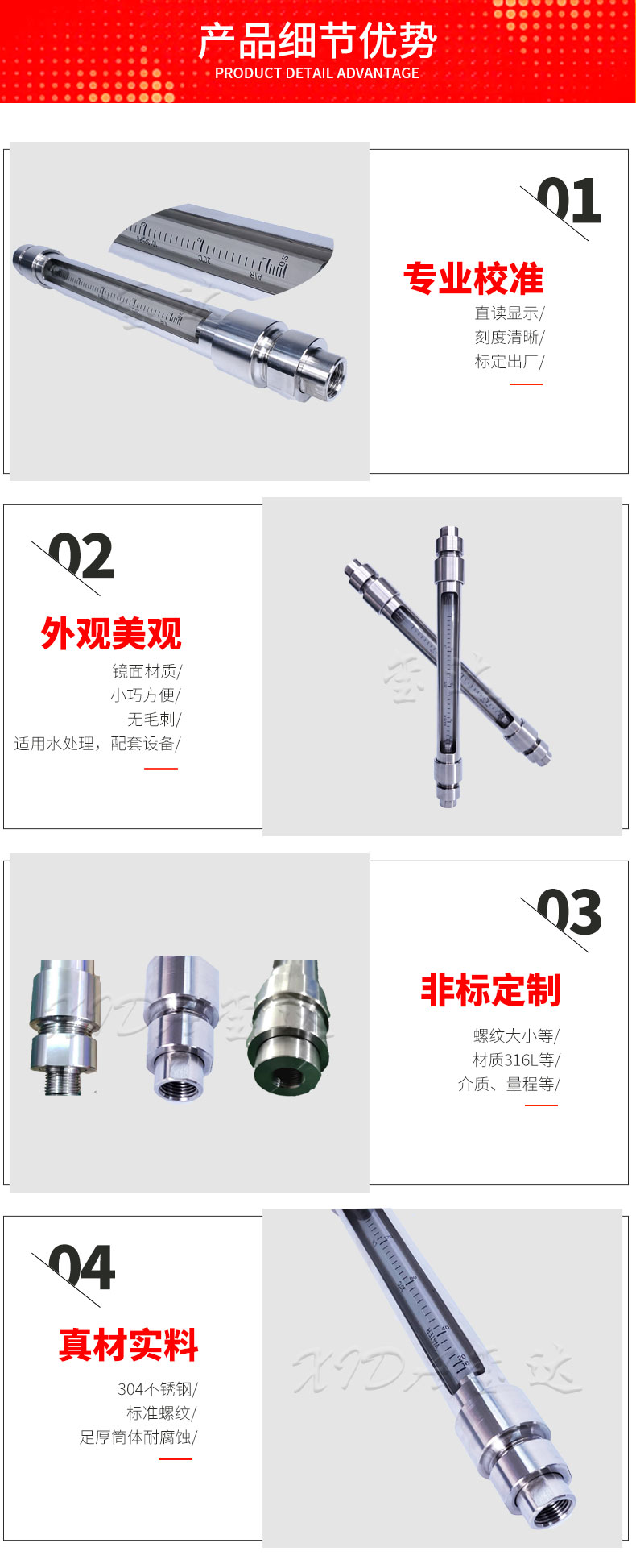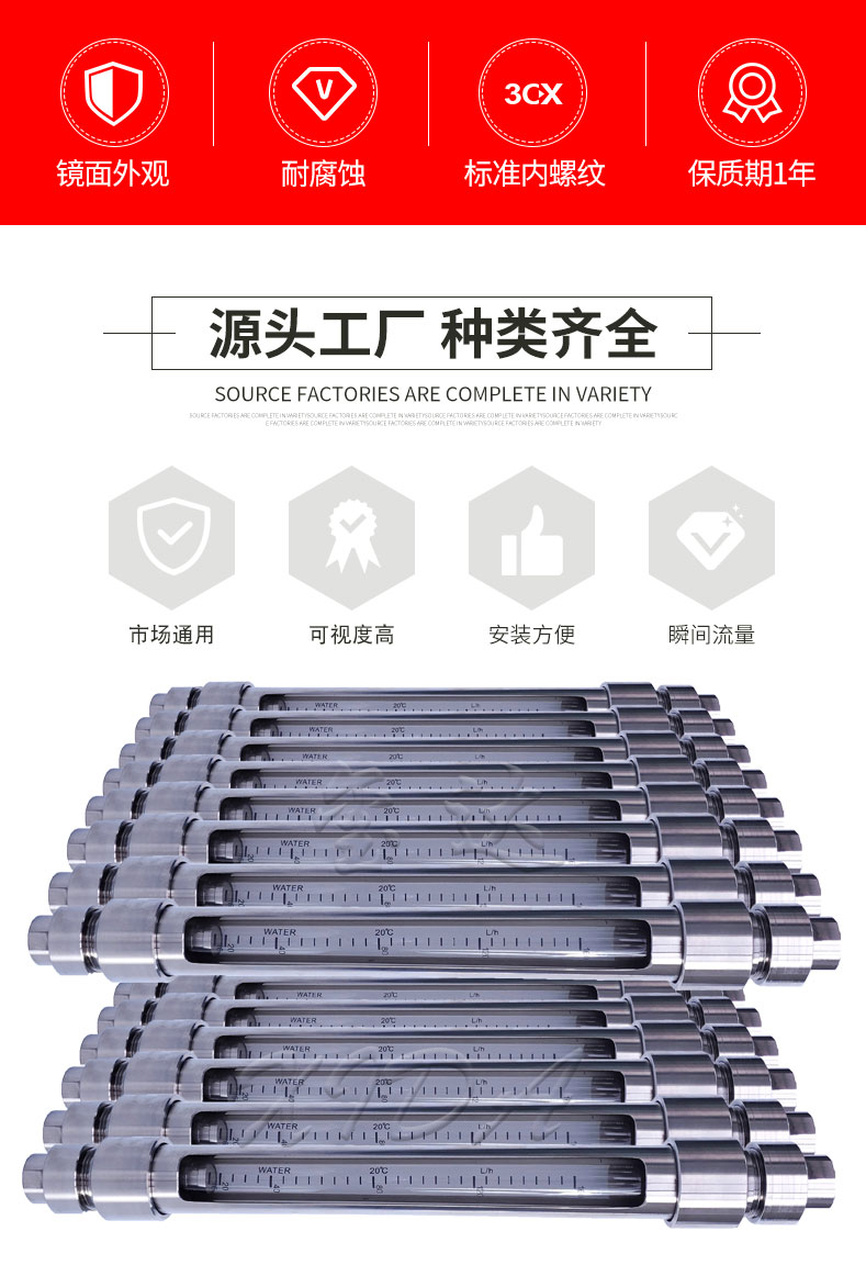 1.優(yōu)點:本款流量計光面外觀,刻度清晰,耐腐蝕,內(nèi)密封結(jié)構(gòu),標定出廠,一件起售。
