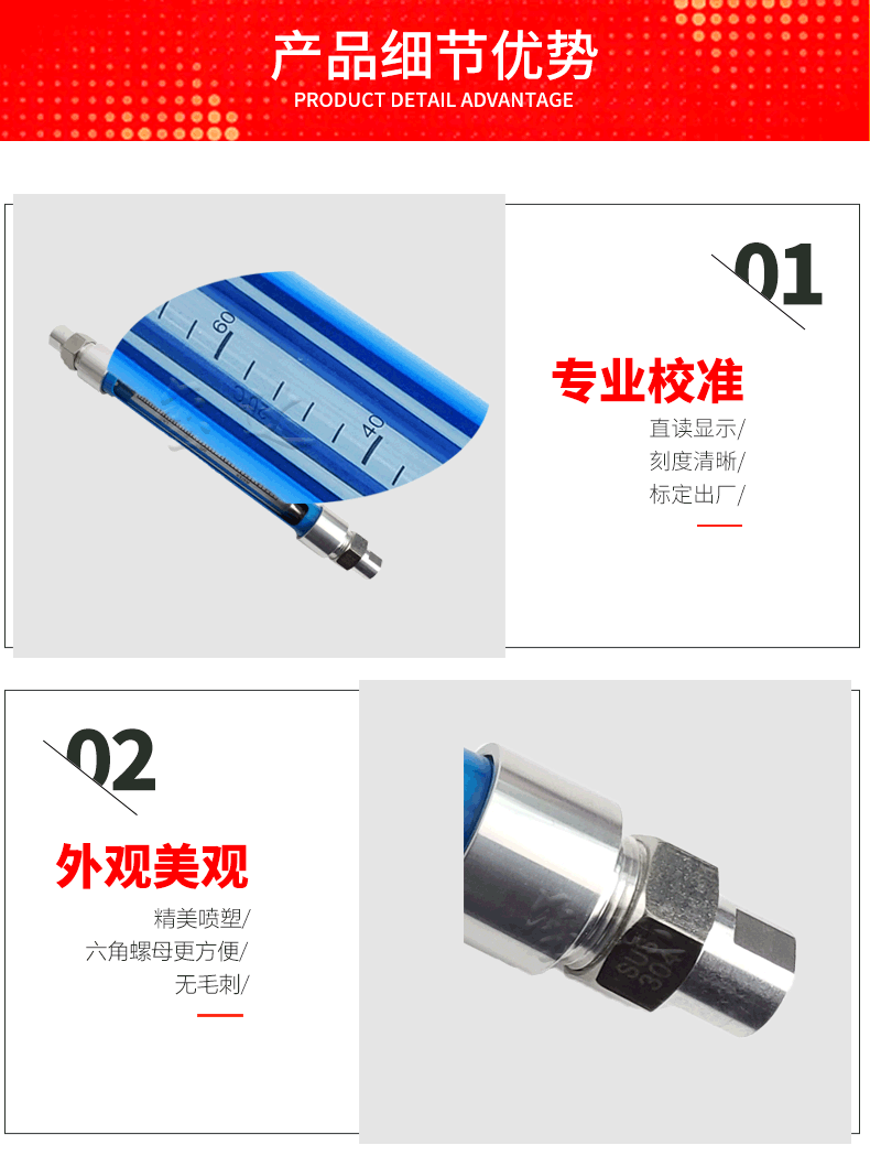 6. 方便更換浮子及玻璃管;