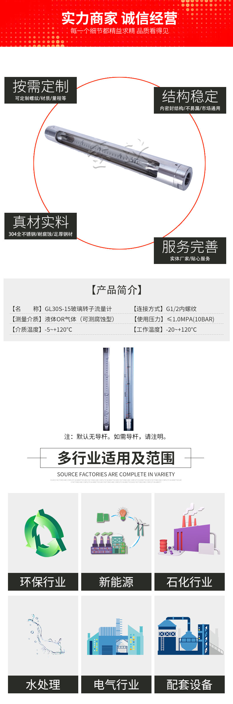 GL30S-15不銹鋼玻璃轉(zhuǎn)子流量計是璽達(dá)儀表生產(chǎn)銷售的一款耐腐蝕,耐高壓,耐高溫,一件起售的轉(zhuǎn)子流量計。璽達(dá)儀表生產(chǎn)銷售的流量計適用于環(huán)保設(shè)備,化工企業(yè),石油企業(yè),電氣行業(yè)等。本公司更有多種機(jī)械設(shè)備,滿足客戶非標(biāo)定制。璽達(dá)儀表致力于把控品質(zhì),滿足需求,讓客戶能夠無憂購買。本公司作為生產(chǎn)廠家,擁有標(biāo)定設(shè)備以確保準(zhǔn)確度。。江蘇璽達(dá)儀表有限公司為您提供貼心服務(wù)。了解更多,服務(wù)更多。