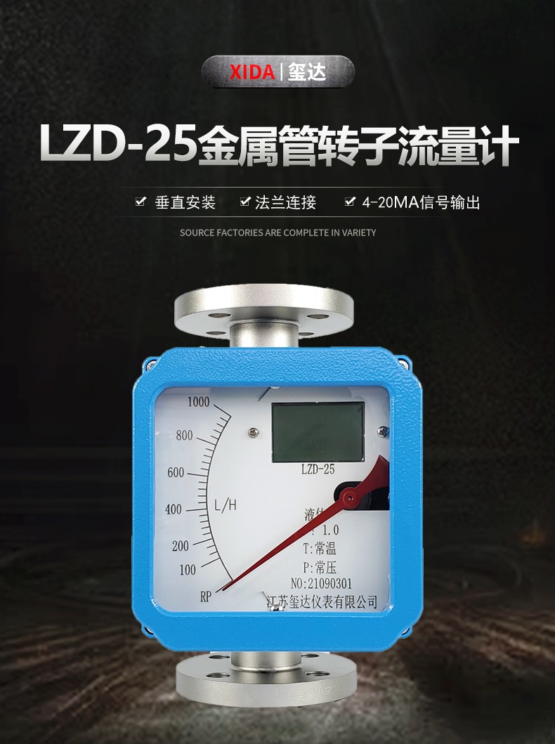 LZD-25金屬管轉(zhuǎn)子流量計(金屬管浮子流量計)是工業(yè)自動化過程控制中常用的一種變面積流量測量儀表。它具有體積小,檢測范圍大,使用方便等特點,可用來測量液體、氣體以及蒸汽的流量,特別適宜低流速小流量的測量。
