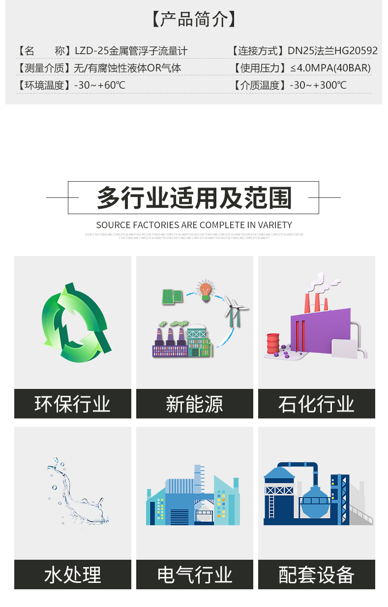 金屬管浮子流量計以其優(yōu)良性能和可靠性,性價比,在石化、鋼鐵、電力、 冶金、輕工、食品、制藥、水處理等行業(yè)得到了廣泛的應(yīng)用。
