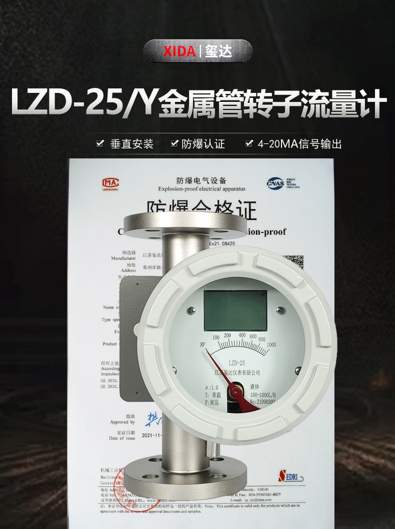 江蘇璽達(dá)儀表有限公司擁有專業(yè)的加工設(shè)備,LZD-25/Y金屬管轉(zhuǎn)子流量計擁有防爆合格證,為您的安全保駕護航。