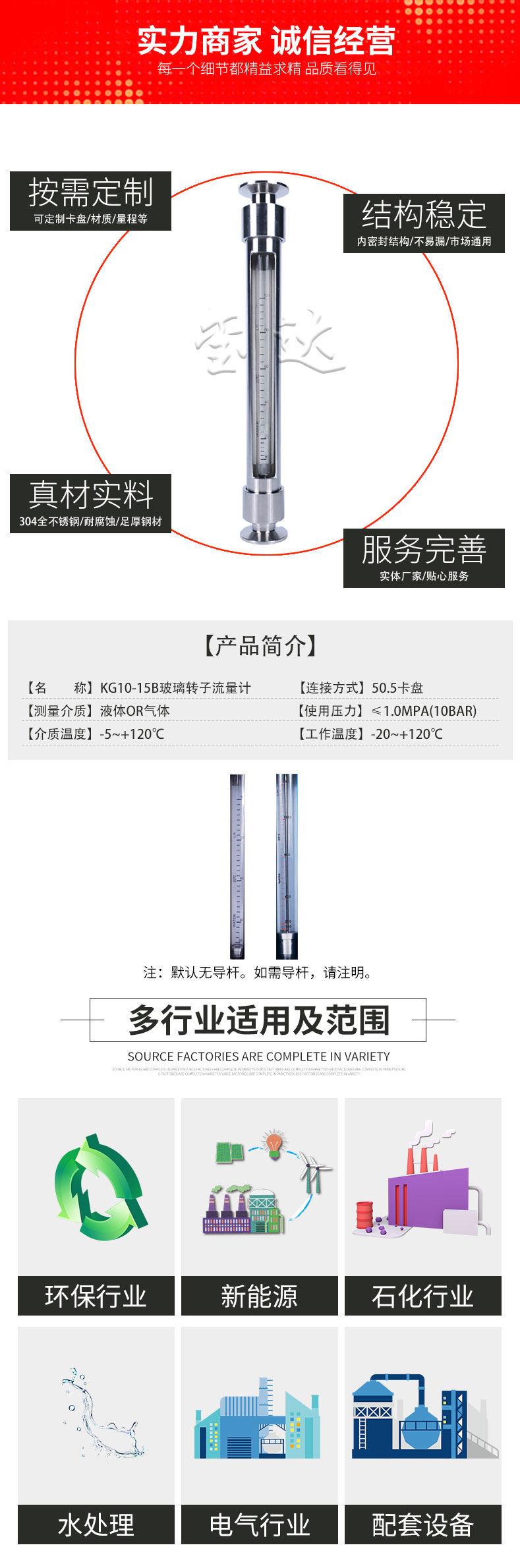 KG10-15B玻璃轉(zhuǎn)子流量計是一款衛(wèi)生級卡箍連接,采用不銹鋼材質(zhì),適用于水處理的的卡盤流量計。